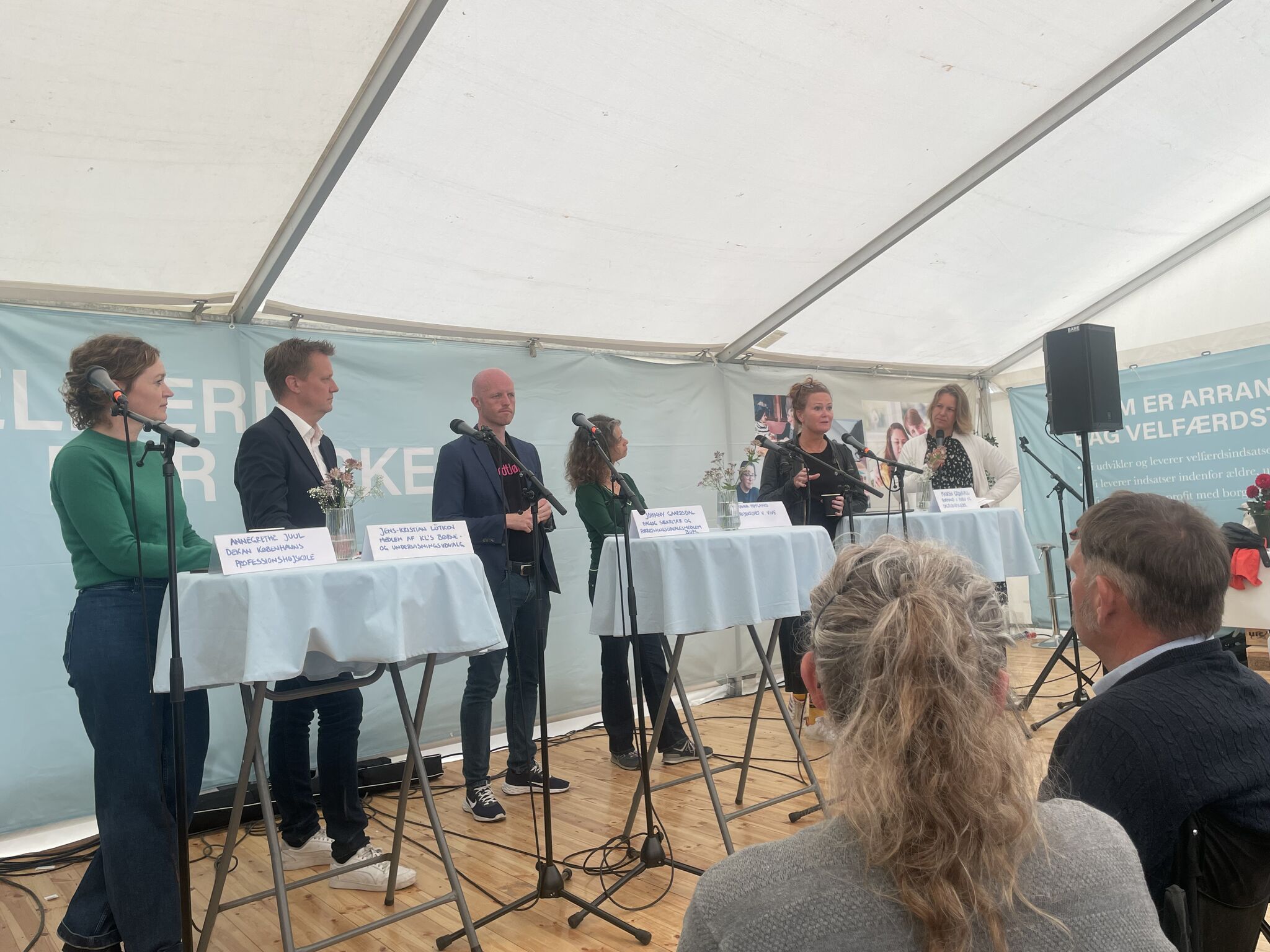 Den politiske debat omhandlede frisættelse af dagtilbudsområdet. Vores direktør, Claus Thykjær, starter debatten med pointen om at de private og selvejende dagtilbud til dels allerede er frisatte. Sigge Winther Nielsen fra INVI bakker op og pointerer at frisættelse, fra embedsmands side, instinktivt vil føles lidt farligt. Og at vi derfor netop nu skal vise forandringsmod og vise, at det er en god løsning. Marie Magne Brixtofte, som blandt andet sidder i kommunalbestyrelsen i Gentofte fra Venstre, husker os på at dem der skal være modige, er dem med ansvaret, som skal handle imod deres instinkter. Herefter fortsatte debatten livligt for øjnene af det fyldte telt, hvor virkelig vigtige budskaber kom frem.